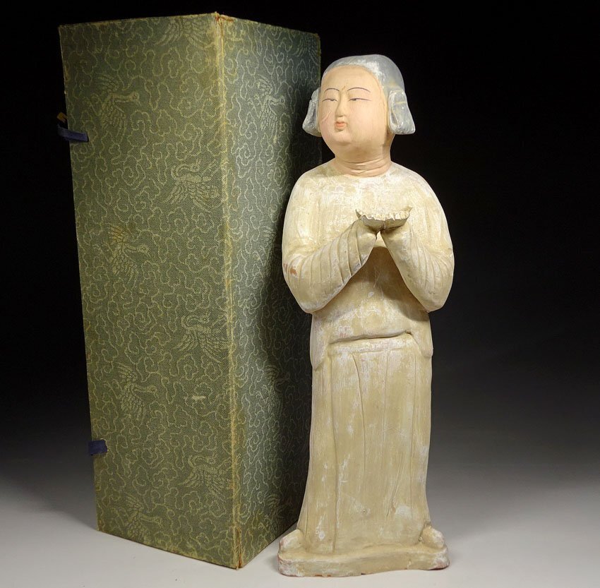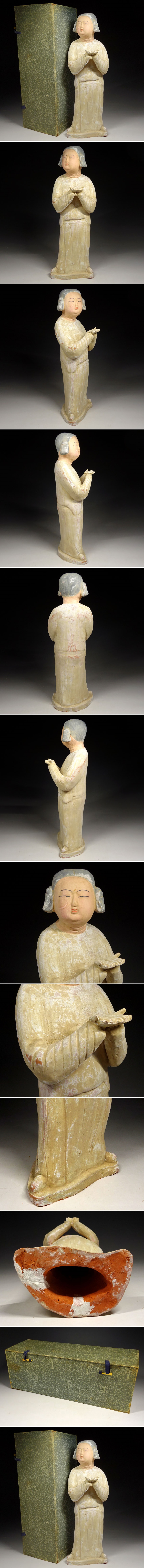 > 緑屋c■ 中国古玩 加彩 人物俑 箱付 唐物 時代物 i9/11-6871/4-4#80