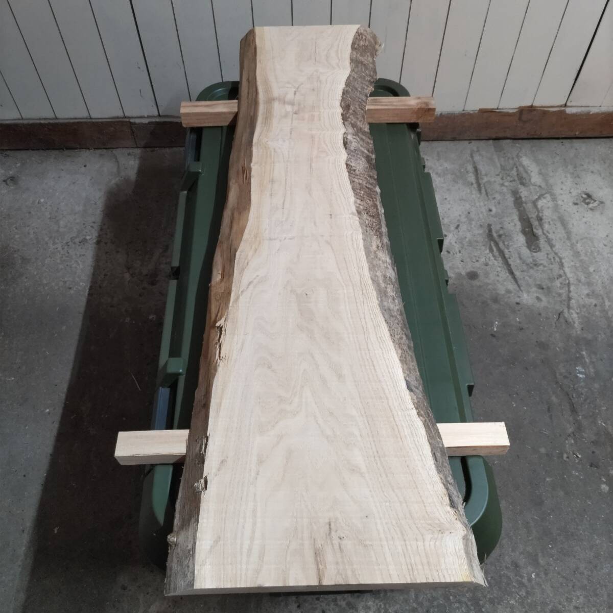 - 栗(B)栗の木 クリ 一枚板 長1100 幅250〜360 厚33 未乾燥 未加工 粗挽き 無垢 天然木 耳付き板 花台 天板 テーブル板 店舗看板 DIY