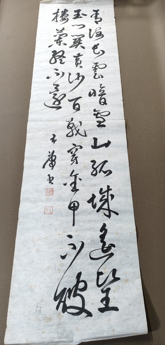 - k112 【作者不詳】掛軸 書 三行書 書道 表装無し 掛け軸 古美術 骨董 時代物 落款 模写