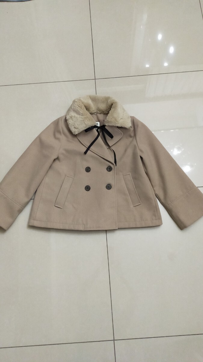 - 即決 美品 earth music&ecology ファー付きショートコート ピーコート ベージュ アースミュージックアンドエコロジー ファー