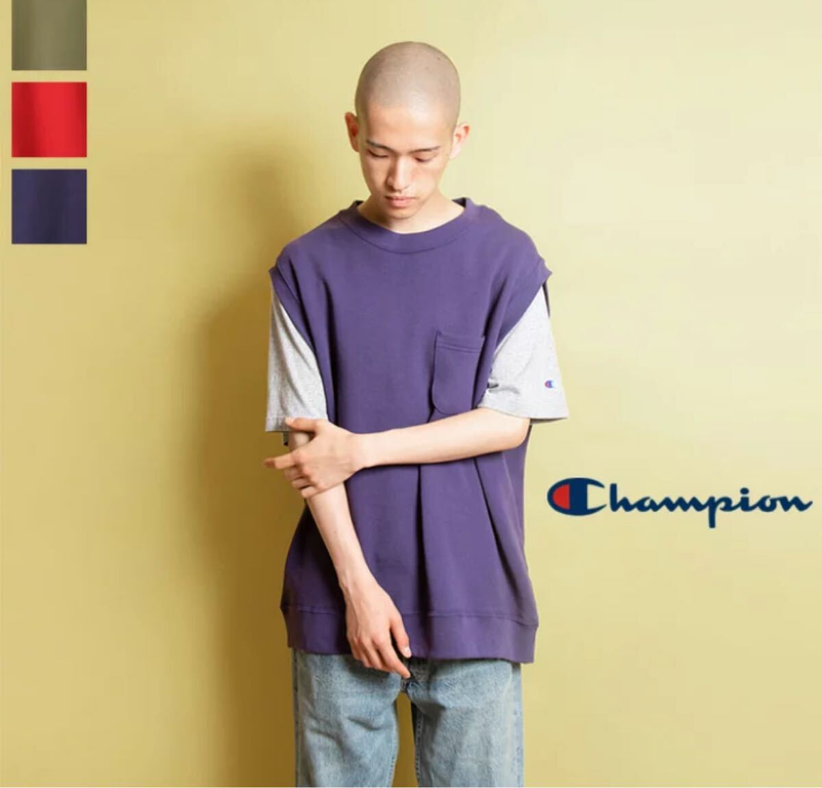 - champion 裏起毛スウェットベスト パープルネイビー