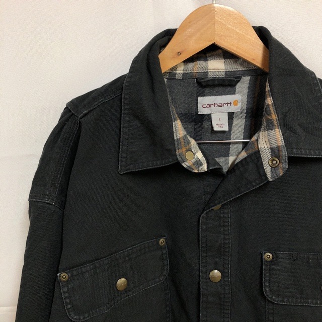 - A725 カーハート L アメリカ古着 チェック 長袖 コットン シャツ 厚手 ブラック Carhartt メンズ