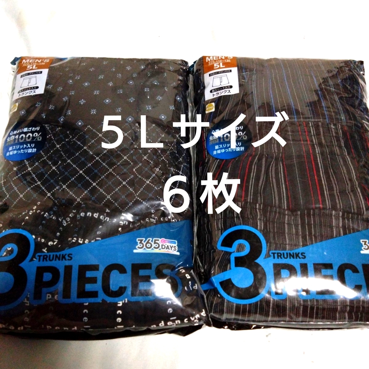 - ①メンズ 紳士 トランクス 5Lサイズ 3枚組を2セット6枚 サイズ5L 脇スリット入 綿100%