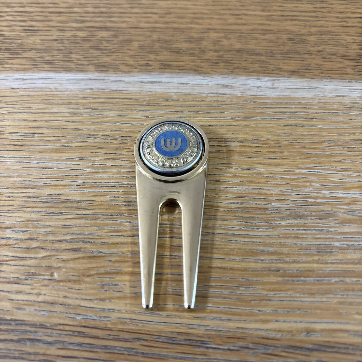 - M・Uスポーツ ゴルフマーカー付グリーンフォーク ゴールドカラー 送料込
