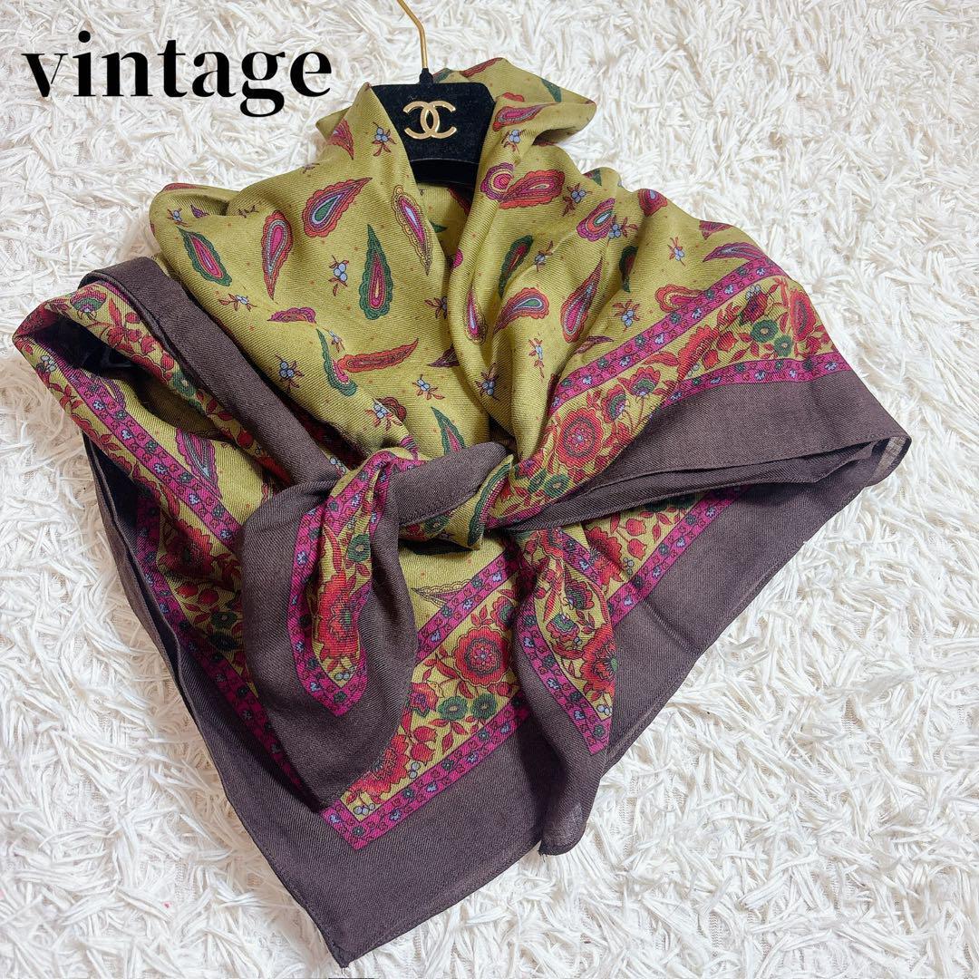 > 美品 スカーフ バンダナ ショール 大判 正方形 ペイズリー 模様カバン 通勤 オフィスカジュアル 上品 高級感 総柄 ヴィンテージvintage