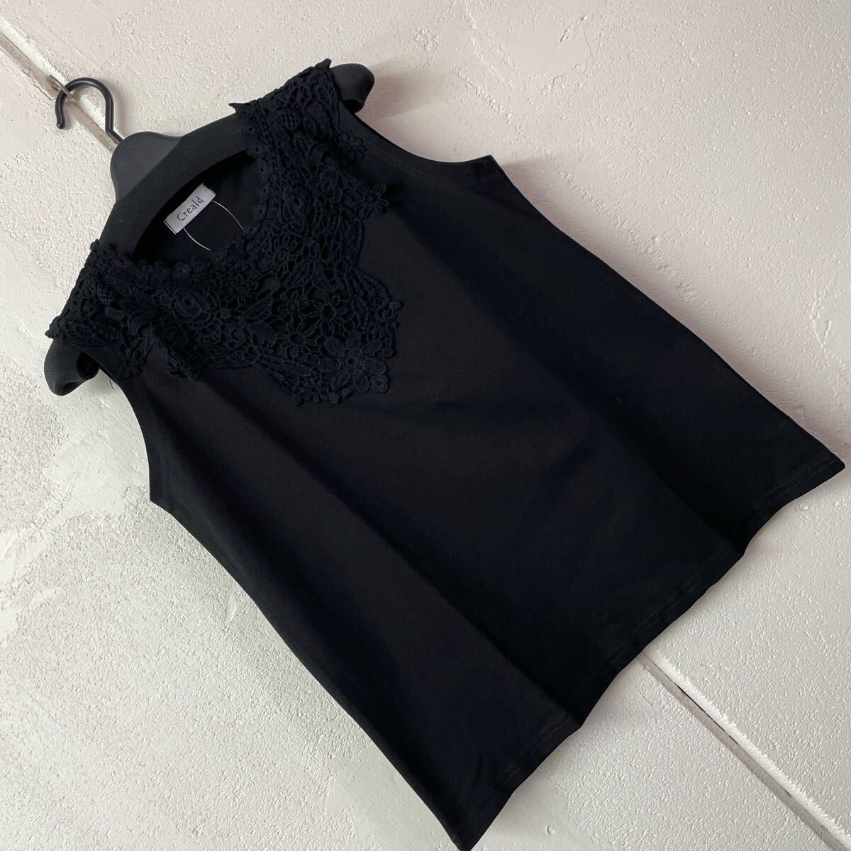 - 綿100%かぎ針レース使いタンクトップ黒