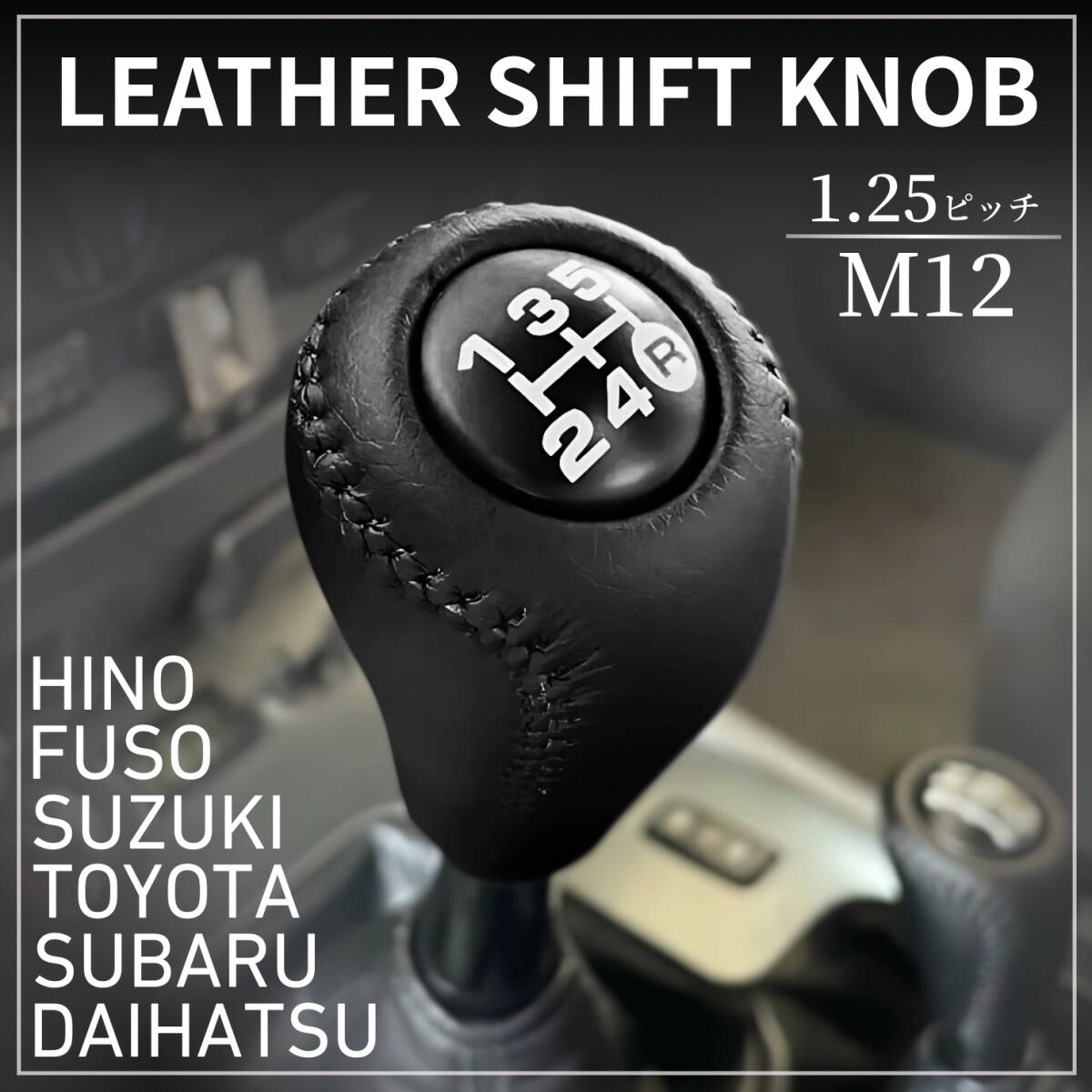 - シフトノブ トヨタ MT用 レザー 5速 ミッション 黒 ダイハツ 日野 スズキ ふそう スバル M12 1.25 車 ギアヘッド 交換 ブラック マニュアル