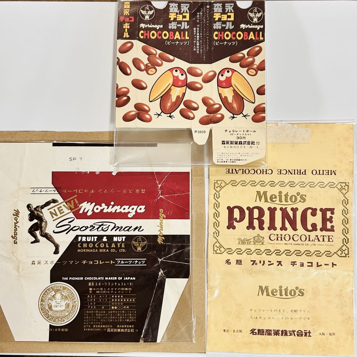 - 【昭和レトロ】 チョコパッケージ 3点 森永チョコボール スポーツマン 名糖プリンス 昭和40年代