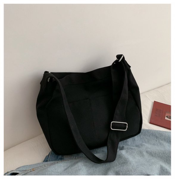 - キャンバスショルダーバッグ男女兼用バック斜めがけA4大容量おしゃれブラック