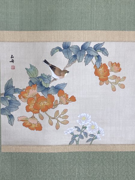 - 《魚亀》【模写】石舟「花鳥図」絹本 日本画 茶掛 茶道具 古美術 掛軸 掛け軸 中国 人が書いたもの