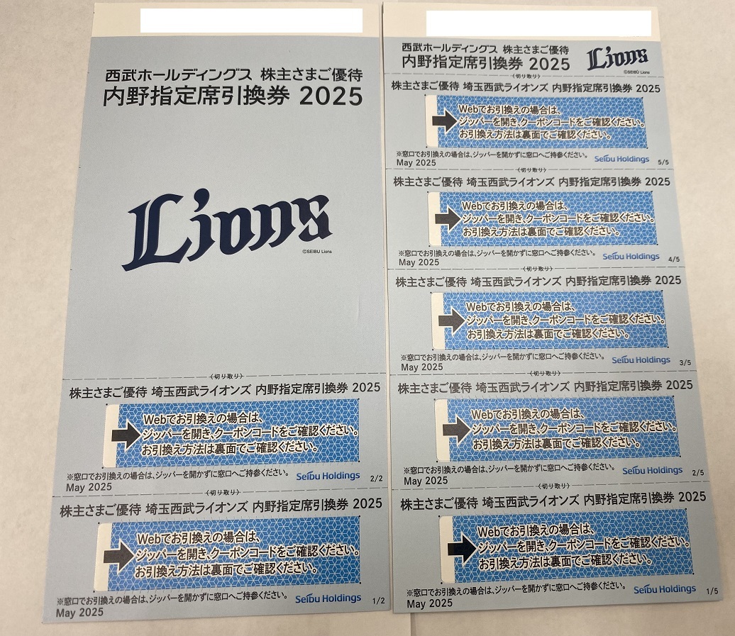 - 【大黒屋】即決 西武ホールディングス 内野指定席引換券 2025 7枚セット 有効期限:2025年 パーソナル パ・リーグ公式戦 最終戦まで