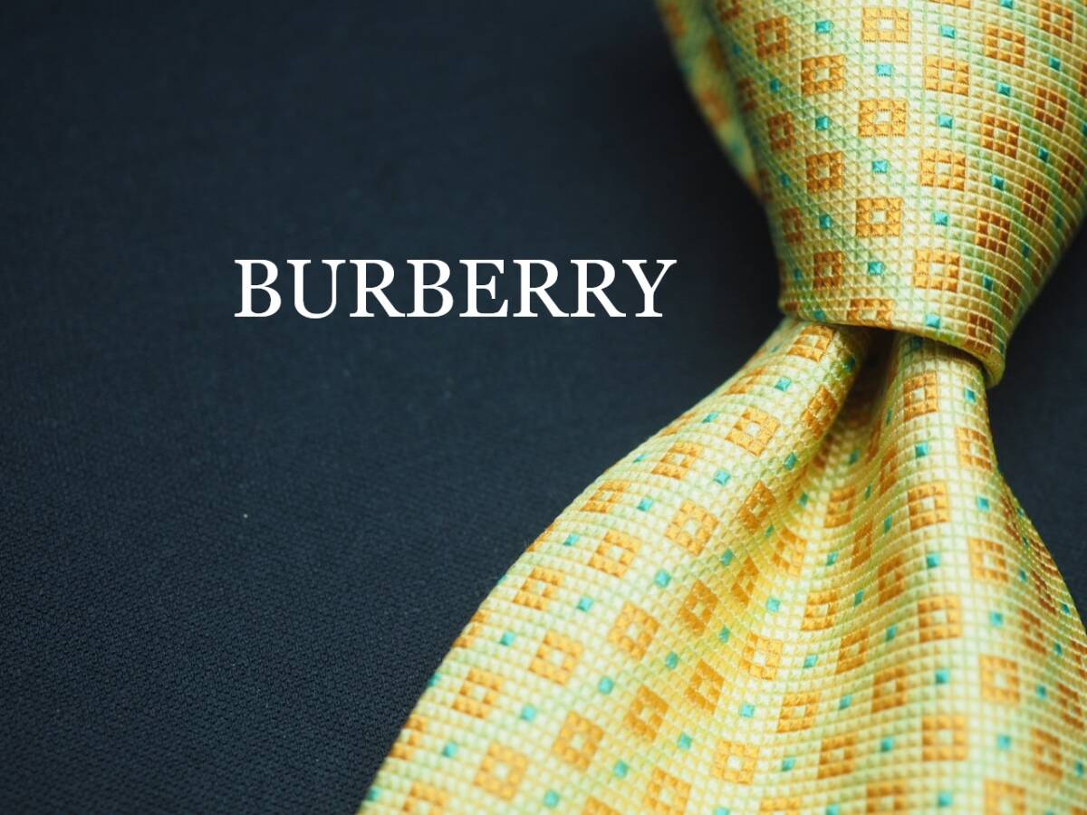 - 美品【BURBERRY バーバリー】 F2319 黄系 SILK ブランド ネクタイ 古着 良品 転売 仕入