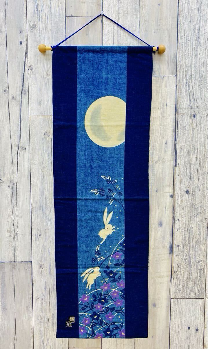 - 〈N8350〉 タペストリー 藍布 十五夜 月見 うさぎ 壁掛け