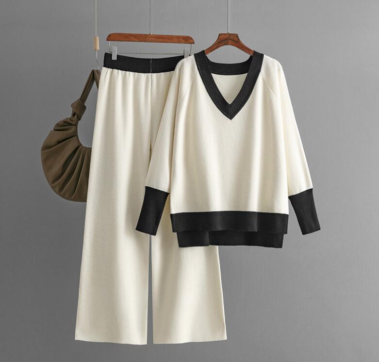 - 342 パンツスーツladiesレディース ◇ 魅惑Styleセクシー ◇sexy ニット素材 秋冬 上質 Vネック アイボリー