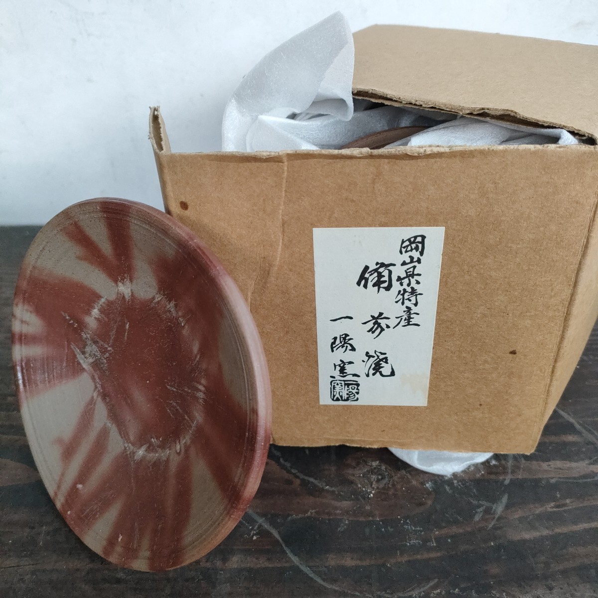- 備前焼一陽窯 木村宏造(木村一陽の長男) 銘あり小皿5客セット12.5cm×2cm 緋襷 火襷 5枚5個 紙箱 工芸品 民藝 民芸 陶芸 伝統工芸士
