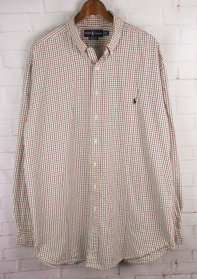 > MAS9114 POLO RALPH LAUREN ポロラルフローレン タッターソール ボタンダウンシャツ ホワイト系×レッド系×ブラック系 XLT TALL