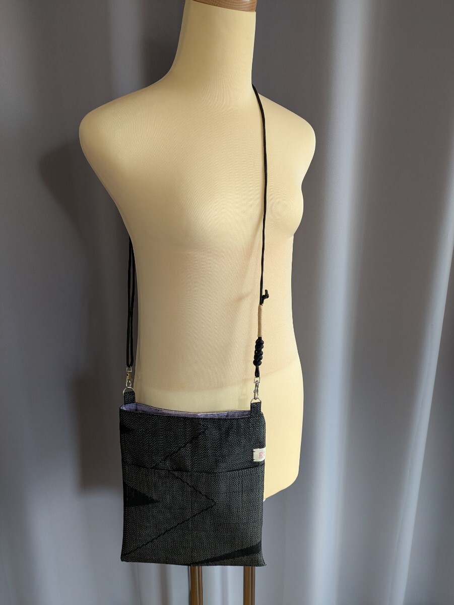 - 送料無料☆紬の着物リメイク サコッシュ 黒