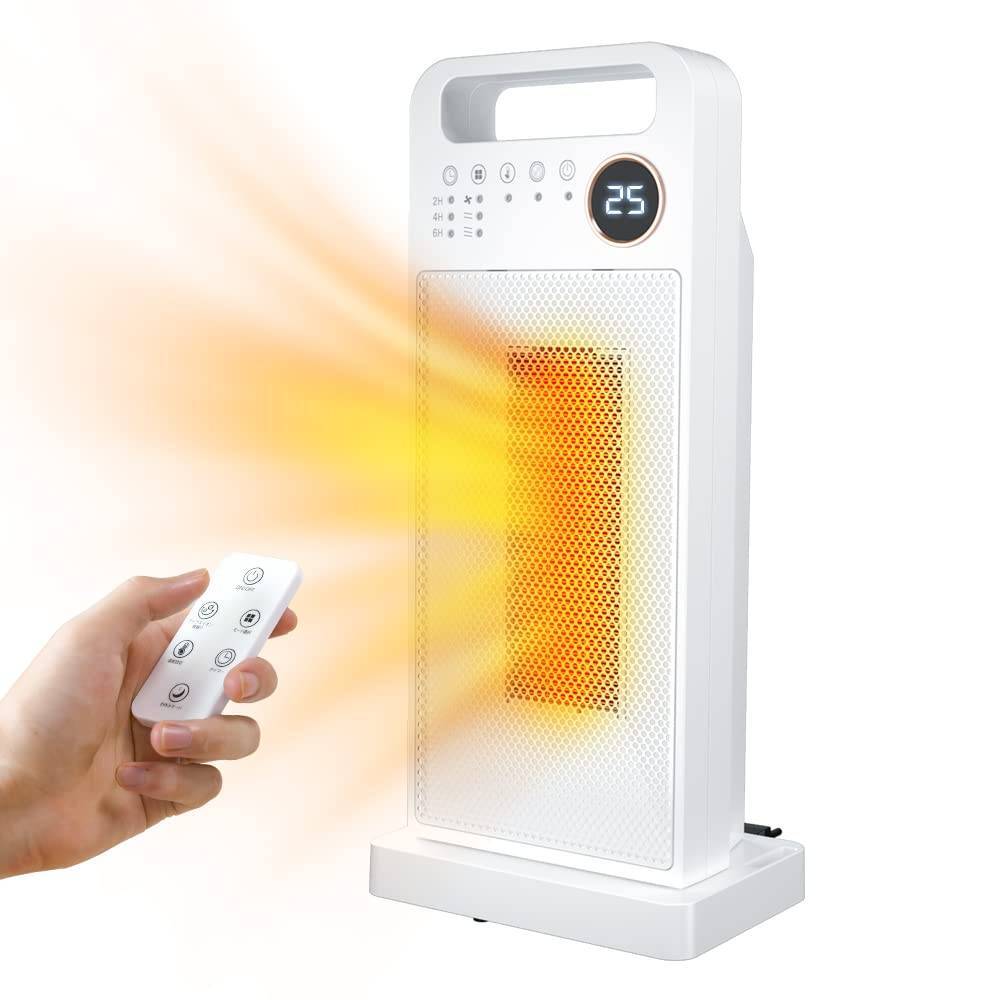 - 速暖 / 小型セラミックヒーター / 静音 / タイマー / リモコン付き / ホワイト