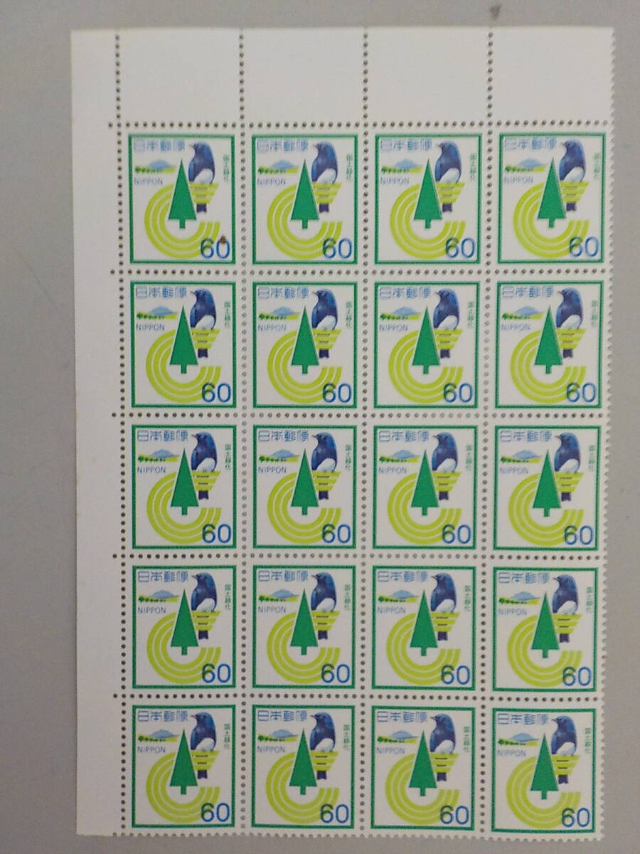- 国土緑化 1977年 「 植樹祭のマークとオオルリ鳥 」 60円切手×20枚 未使用