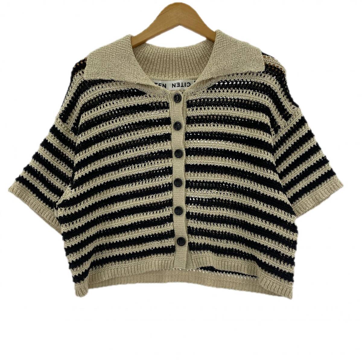 - CITEN シテン メッシュニット ボーダー クロップド カットソー sizeFREE/ベージュ×ブラック