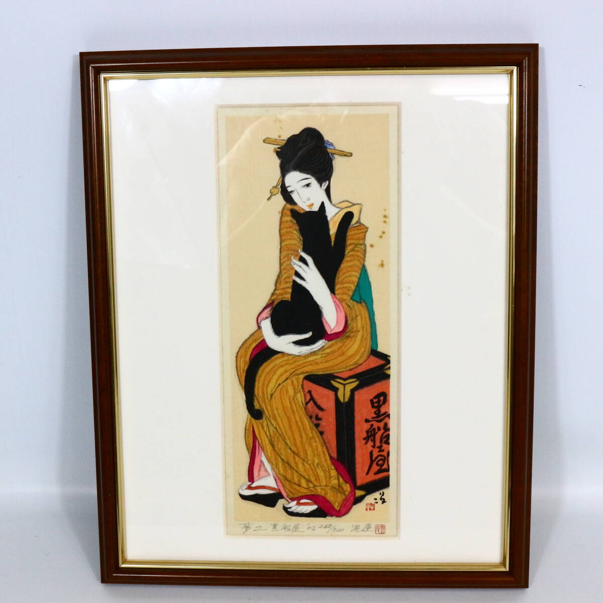 - 【真作】 竹久夢二 「黒船屋」 木版画 2002年作 大正ロマン 夢二式美人画