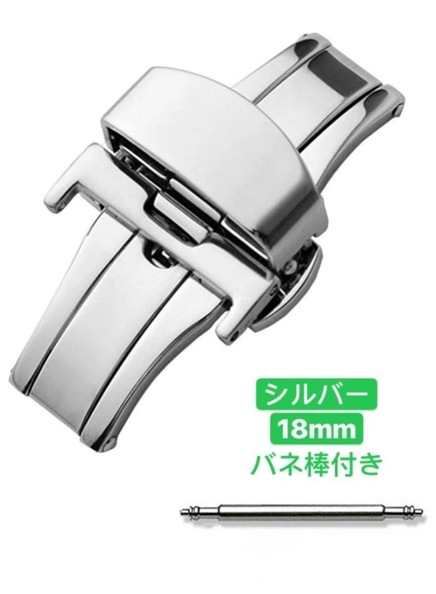- Dバックル 腕時計 両開き式 観音開き 尾錠 時計バックル 中留 18mm バネ棒付き シルバー