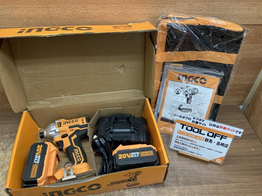 > 002○おすすめ品○INGCO インパクトドライバ CIRLI2004J バッテリ2個、充電器、収納バッグ 高崎店