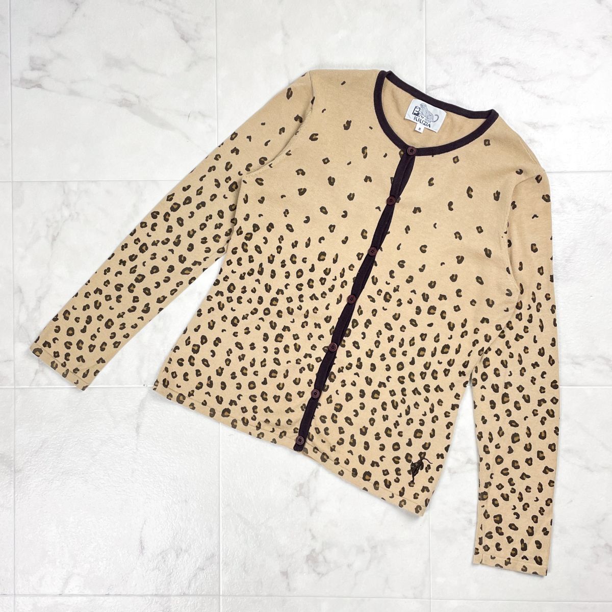 - B by KRIZIA ビーバイクリッツィア レオパード柄クルーネックカーディガン コットンニット長袖セーター レディース ベージュ サイズM*FD370