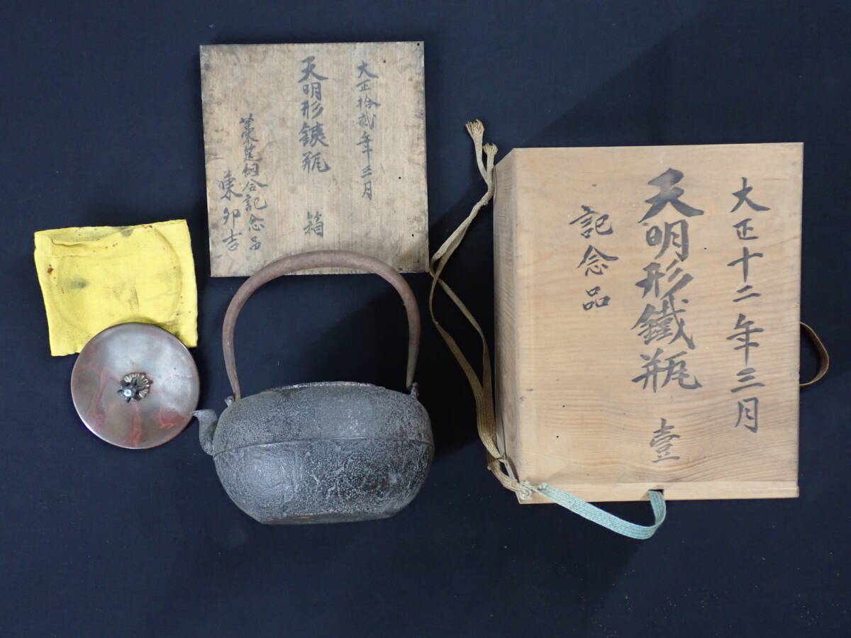 - 鉄瓶 天明型鉄瓶 天明鋳物 大正時代 送料込