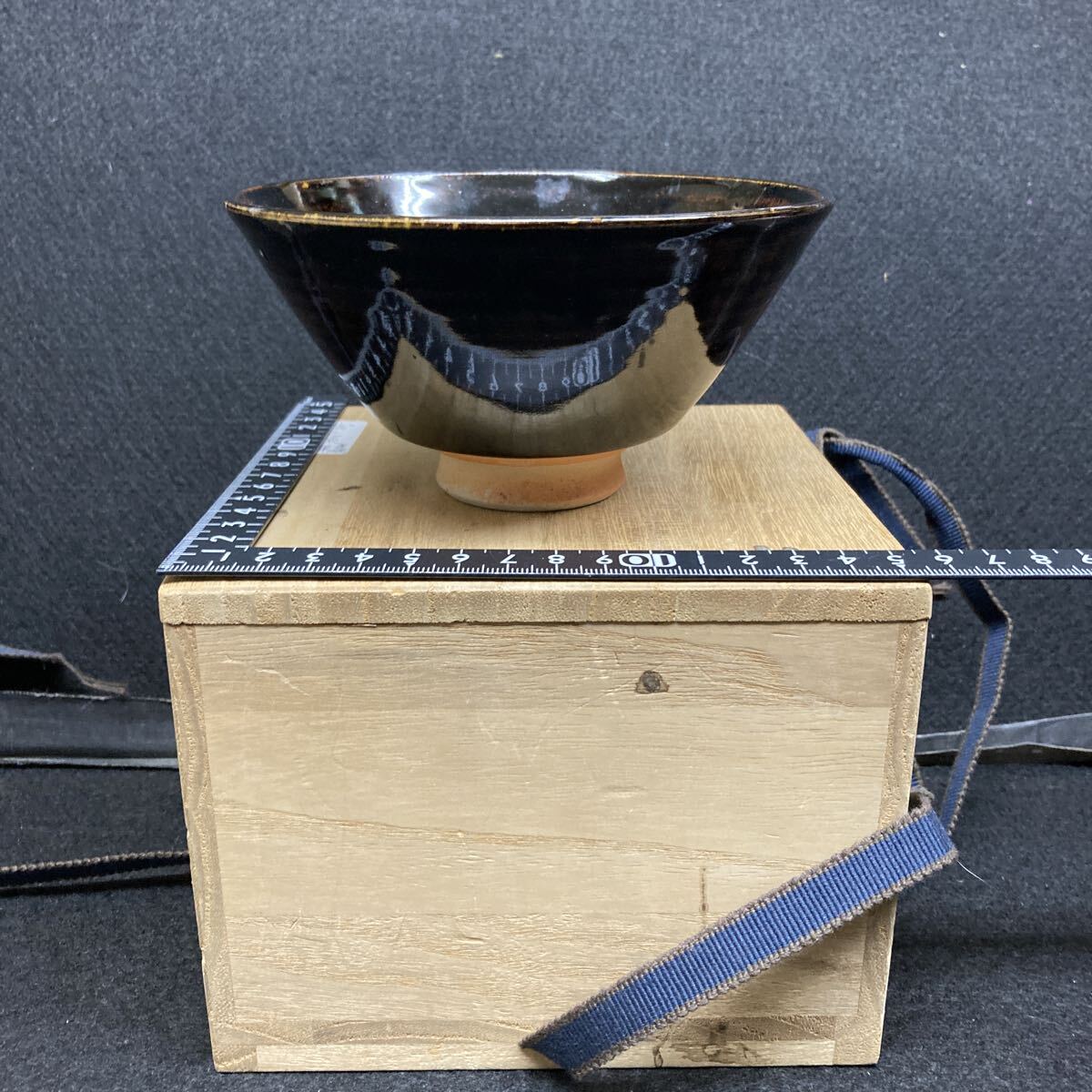 - 富竹窯 宮之原謙造(物故作家)茶器天目釉 抹茶碗 合い箱付き 師(板谷波山) 師(真葛香山)