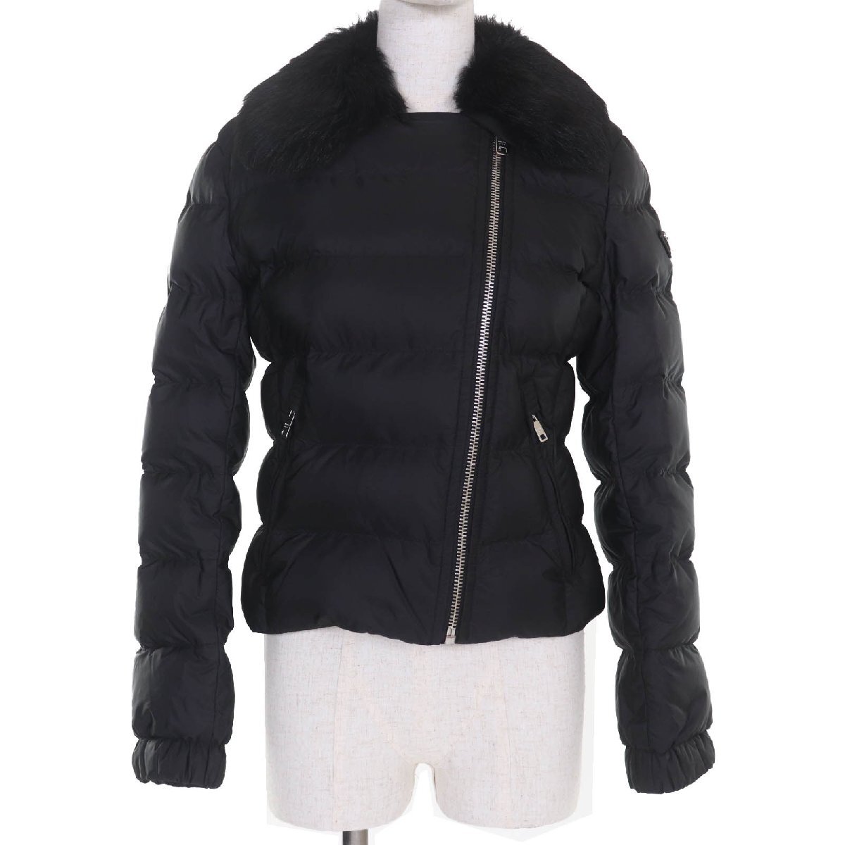 - 美品◇PRADA プラダ 2020年製 29Y510 トライアングルロゴプレート・襟ラムファー付き ショート丈 ダウンジャケット 42 正規品 レディース