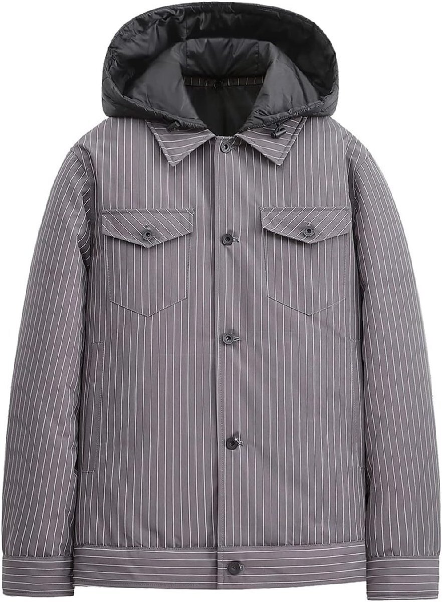 > メンズダウンコットンジャケット 冬のフード付きダウン ジャケット男性ストライプ ダウン アウターウェア暖かいコート 冬用ジャケット