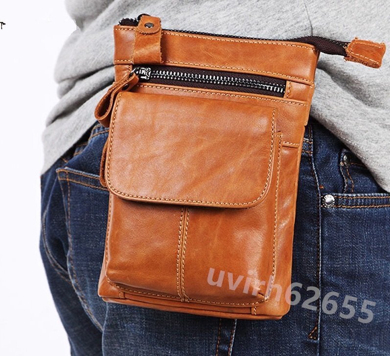 - アウトドア メンズ ショルダーバッグ ヒップバッグ バッグ ウエストバッグ オイルワックス 牛革 本革 レザー 斜めがけ 2way 薄型 ブラウン