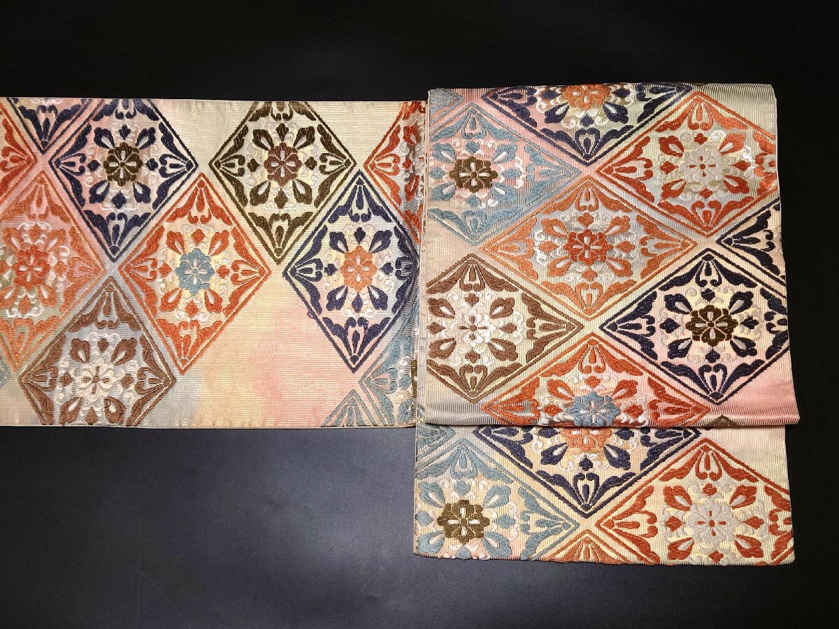 > 志よくせい錦 菱華紋文様 六通柄袋帯 キモノマルシェ【Z-64】