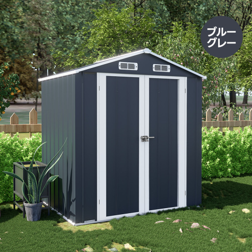 - 【可動棚なし】物置 屋外 スチール 倉庫 床材補強フレーム付き 戸外収納庫 幅173*奥行き107*高193 物置き 屋外収納 【ブルーグレー】