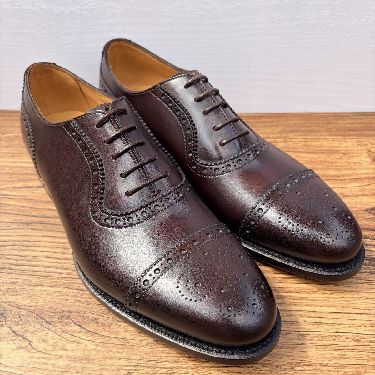 > 【未使用】UNION IMPERIAL ユニオンインペリアル ストレートチップ セミブローグ US6.5 24.5cm ブラウン 茶 内羽根 ビジネスシューズ 革靴