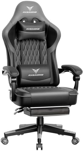 - 【送料無料】RXGAMING ゲーミングチェア オフィスチェア イス 椅子 テレワーク 疲れない 幅広座面 デスクチェア オットマン付き