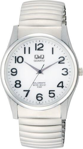 > [キューアンドキュー] 腕時計 アナログ ソーラー 防水 メタルバンド 白 文字盤 H970-214 メンズ シルバー