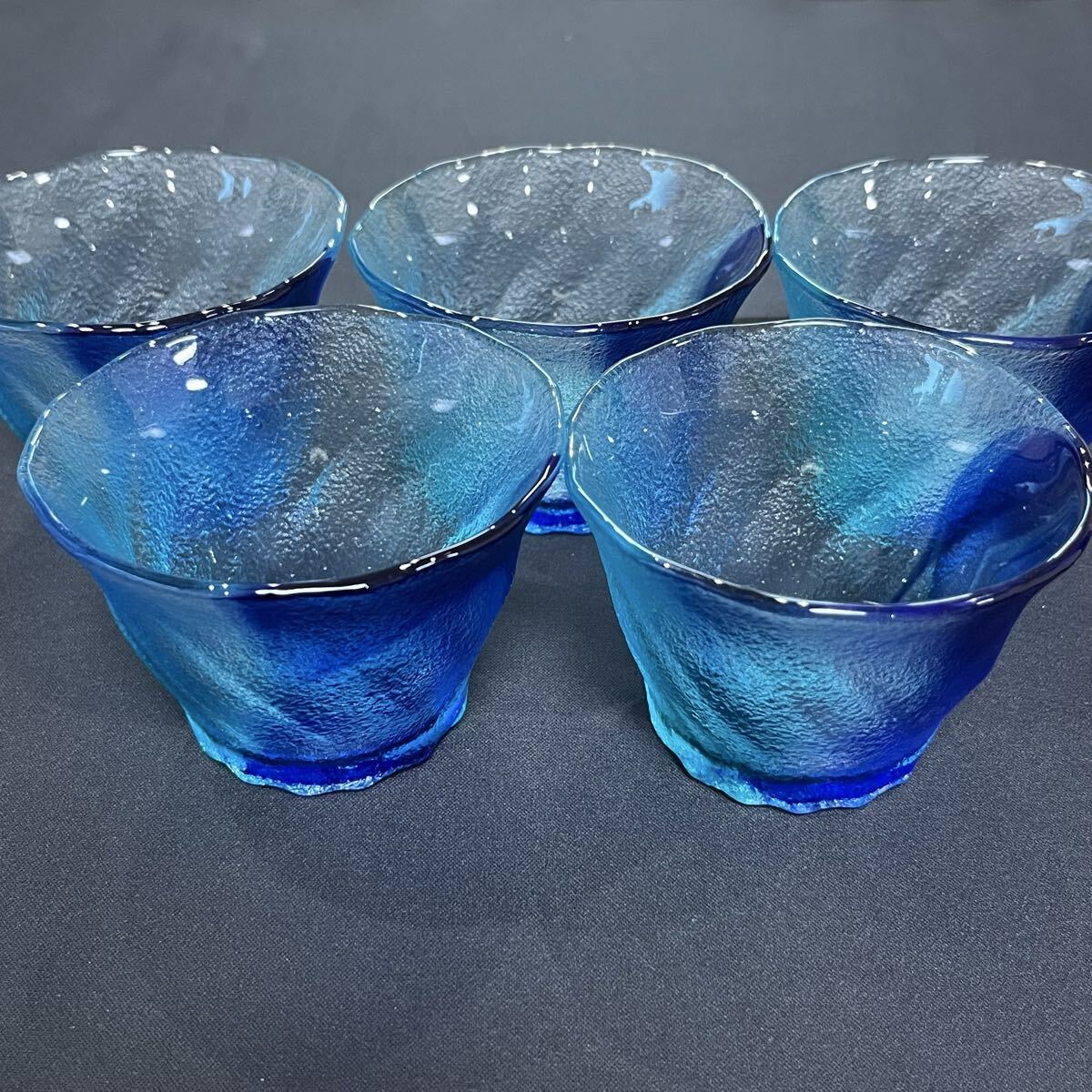 - 彩流 東洋 佐々木硝子 冷酒杯 冷茶碗 5個 セット アンティーク レトロ ブルー 冷茶グラス 青 酒器 食器 グラス コップ
