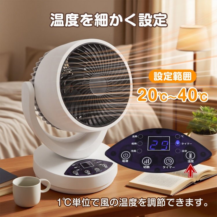 - 温冷サーキュレーター 温風 送風 自動首振り 角度調節 切タイマー コンパクト 空気循環 換気 衣類