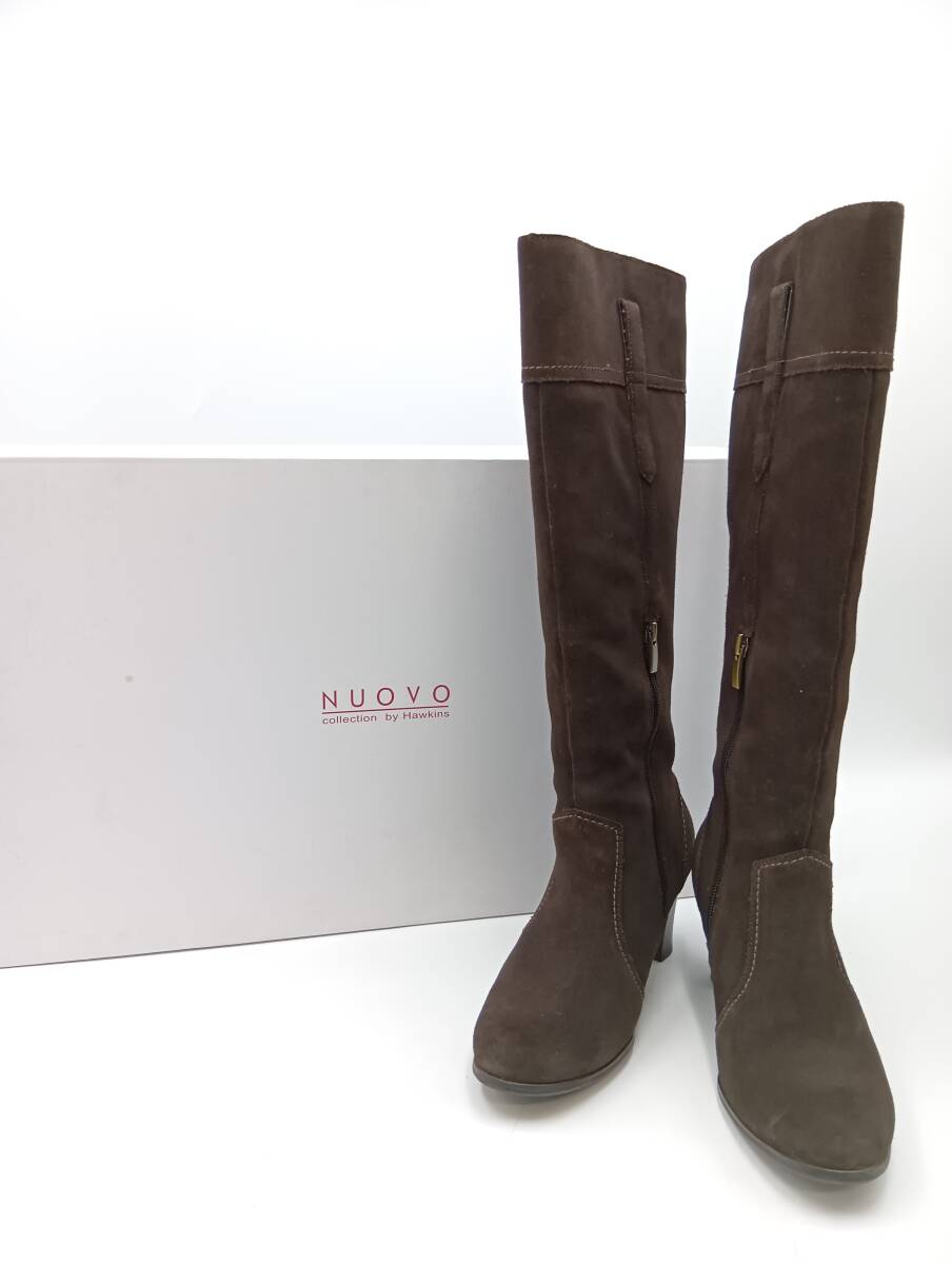 > 【OK彦】【未使用】NUOVO ヌオーヴォ ロングブーツ Lサイズ 24㎝ ヒール7㎝ 革 レザー 茶色系 レディース 1円スタート