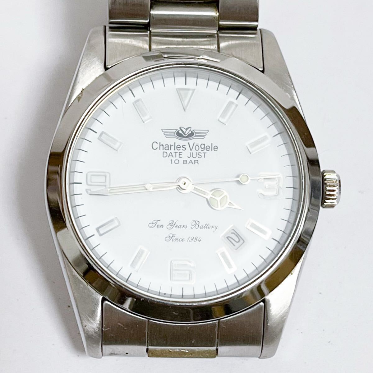 - 和847★ Charles Vogele CV-7835R シャルルホーゲル クォーツ 腕時計 ウォッチ 3針 日付 ホワイト メタルバンド メンズ