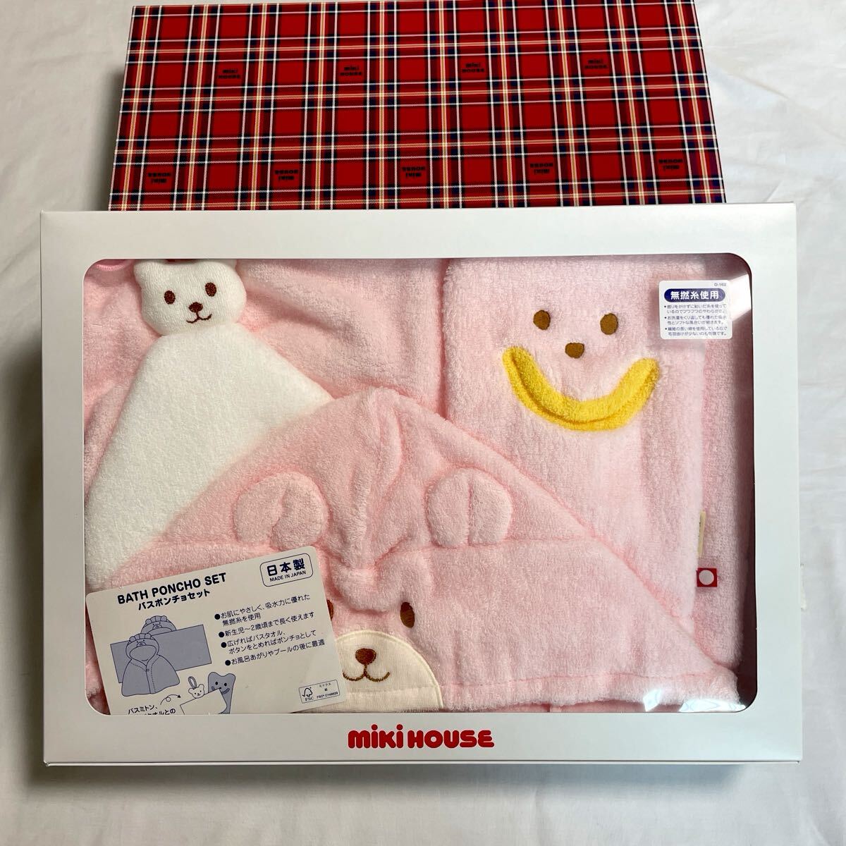 > MIKIHOUSE ミキハウス バスポンチョセット40-3821-493 ピンク くま クマ 赤ちゃん ベビー 出産祝い 未使用 バスミトン ハンドタオル