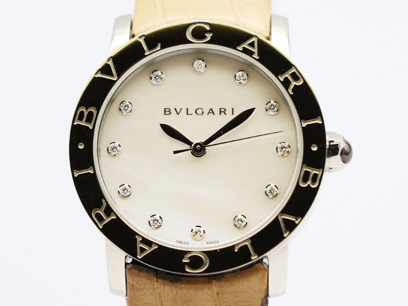 > 【 ブルガリ BVLGARI 】 腕時計 BBL33S ブルガリブルガリ SS/革 自動巻き ダイヤ12P シェル文字盤 ボーイズ □新着 70254-3