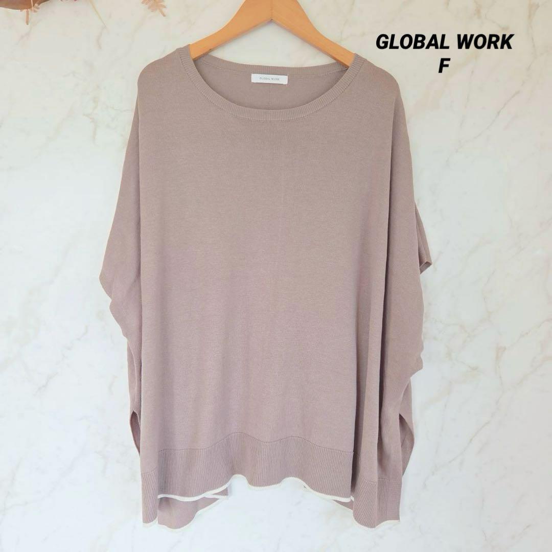 - グローバルワーク スッキレイさらさらポンチョ ドルマンスリーブ 五分袖 ブラウン