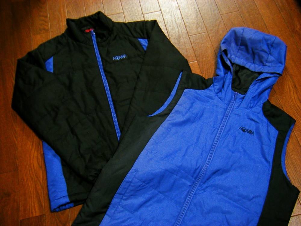 - 2着セット/良品〇HONMA GOLF 中綿入り ジャケット&ベスト M 刺しゅうロゴ 黒色&濃青色