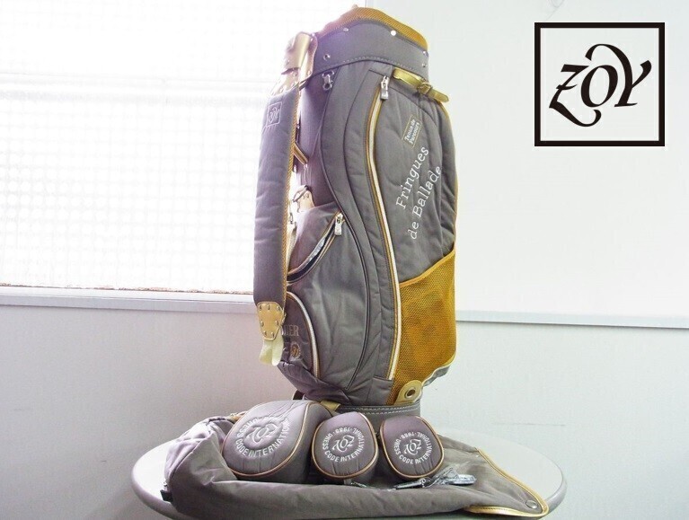 - 正規品★ZOY ゾーイ★31周年記念プレミア中綿自立式キャディバッグ ヘッドカバー3個セット DR FW UT★カーキ茶緑【本物保証】女性向 限定品