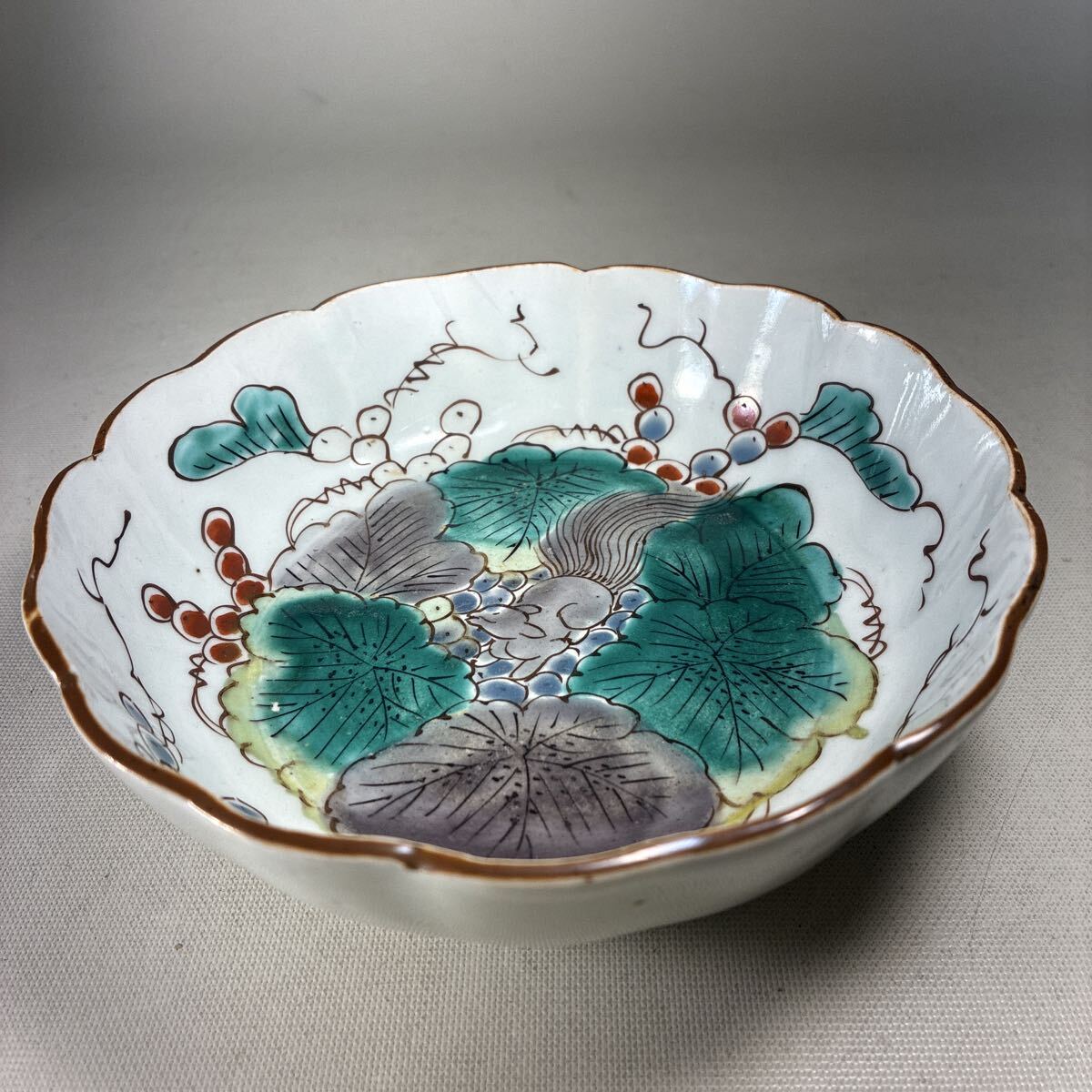 - 李朝 色絵 輪花 鉢 蔓草果実 リス
