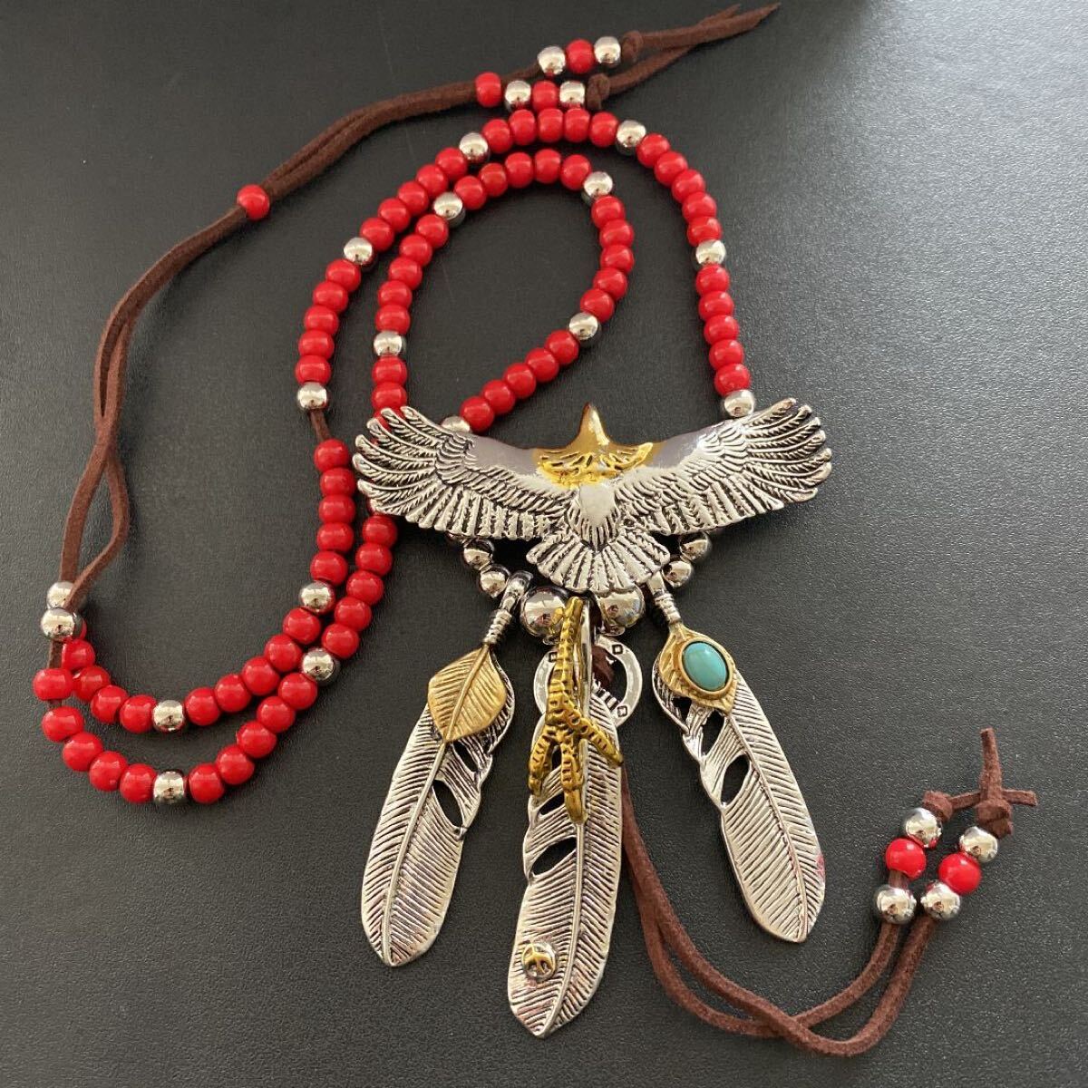 - 3連フェザーネックレス イーグルネックレス ビーズネックレス 人気フェザーネックレス