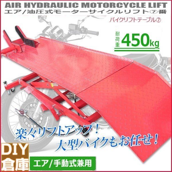 > 【エア式&足踏み式】バイクリフトテーブル7 / モーターサイクルリフトテーブル 小型車から大型車まで対応 最大積載450kg【チャーター便】